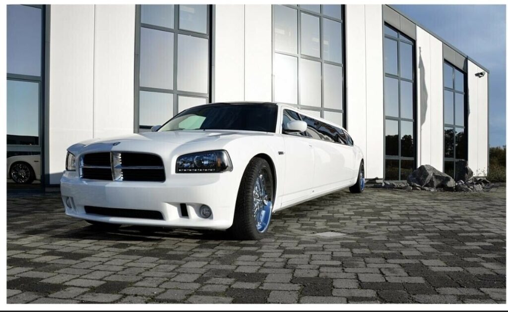 Weiße Limousine mieten – Ihr Dodge Charger als Limousine, das Highlight für jedes Event in NRW. Mieten Sie unsere Dodge Charge Limousine für bis maximal 8 Personen und lassen Sie Ihre Party zu etwas besonderem werden. Ob Mannschaftsfahrten, Hochzeit, Junggesellinnenabschiede, Scheidungsparty oder Geburtstage, eine normale Stretchlimousine hinterlässt immer einen bleibenden Eindruck bei Ihren Gästen. Lassen Sie Ihre Tour zu einem unvergesslichen Erlebnis werden und mieten Sie die Limousine für ihren Anlass in Nordrhein Westfalen.
